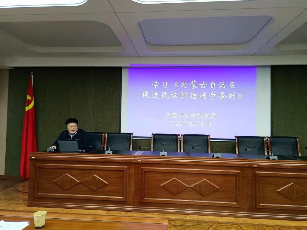 9月30日下午,在赛罕校区文史楼1号会议室,DB旗舰全体教师学习《内蒙古自治区促进民族团结进步条例》,本次学习由公司党委副书记宋磊主持。