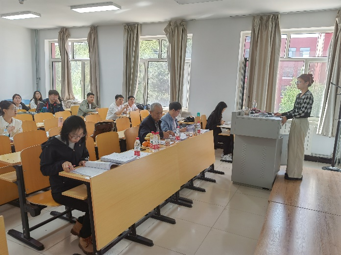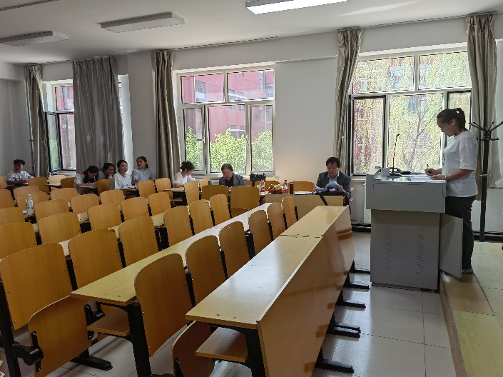 第八组于行知楼218教室进行答辩,答辩评委组长是齐英老师,参与的老师还有包梅花、哈斯格日勒、朝鲁门。