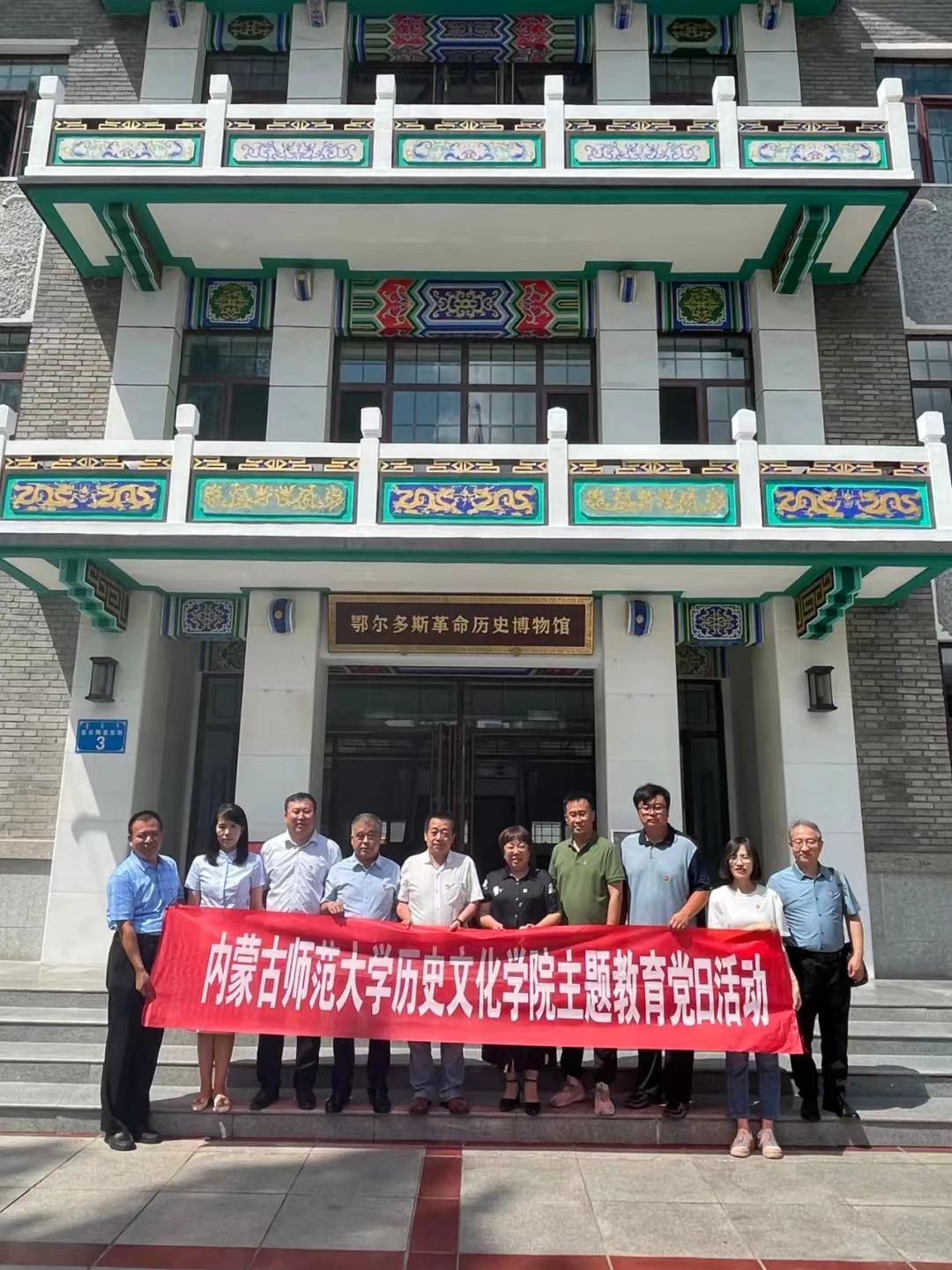 为深入学习贯彻习近平新时代中国特色社会主义思想主题教育活动,牢固树立“四个意识”,坚定“四个自信”,做到“两个维护”,公司党委书记李艳洁,特聘教授、内蒙古博物院原经理陈永志,DB旗舰副经理白林,考古文博系教师李鹏珍、袁刚、孟燕云,公司办公室主任永平等于8月1日下午赴鄂尔多斯革命历史博物馆开展主题教育党日活动。鄂尔多斯博物院主要领导同志陪同参观。
