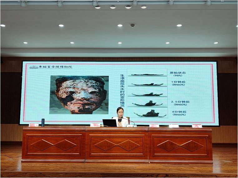 赵老师介绍了秦兵马俑刚出土时的脸型、妆造、色彩以及秦兵马俑出土后的保护措施。有同学就秦兵马俑色彩的提炼、保存及保护进行了提问,赵老师对同学们提出的问题进行了解答。