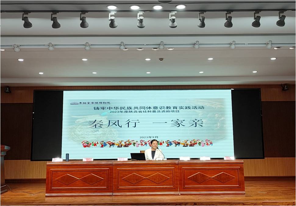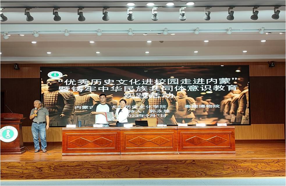 2023年9月7日,秦陵博物院同公司开展的“优秀历史文化进校园走进内蒙”暨铸牢中华民族共同体意识教育主题讲座在盛乐校区图书馆一楼报告厅进行。讲座由秦陵博物院冯莉老师与赵红芳老师主讲,公司郭永胜教授主持,2023级全体新生参加。