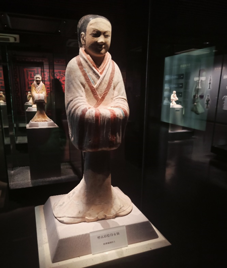 (塑衣彩绘侍女俑)