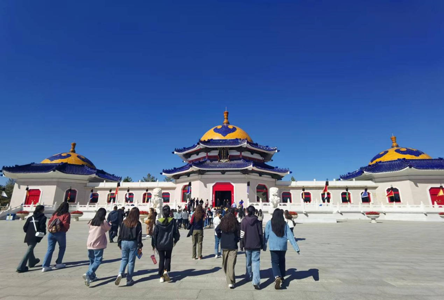 本次见习,在郭老师和几位老师的带领下,首先参观了位于内蒙古鄂尔多斯的成吉思汗陵。如今的成吉思汗陵经过多次迁移,于1954年才由青海的塔尔寺迁回故地伊金霍洛旗陵园,占地约5.5公顷,对研究蒙古民族乃至中国北方游牧民族历史文化具有极其重要的价值,被核定为全国重点文物保护单位。