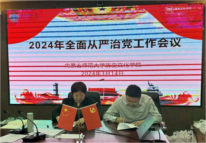 最后,党委书记李艳洁与环节干部代表历史系主任赵文器签订了全面从严治党责任书。