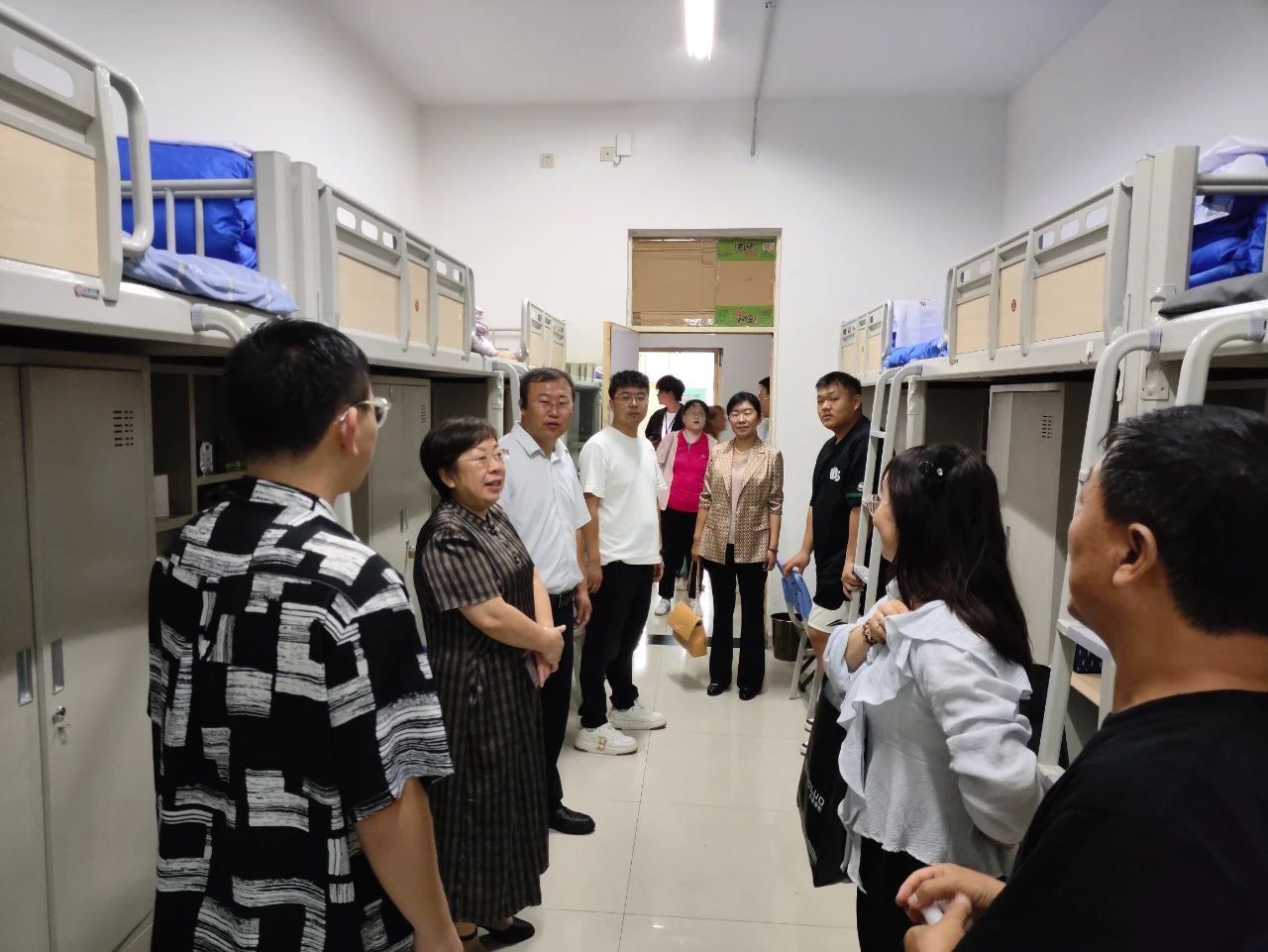 走访过程中,公司领导、老师们认真查看了宿舍设施、设备,与员工、家长亲切交流,了解新生住宿情况,认真倾听了新生的入学感受,提醒新生安全住宿相关事项,并耐心解答了同学们提出的关于学习、生活等方面的各种问题。