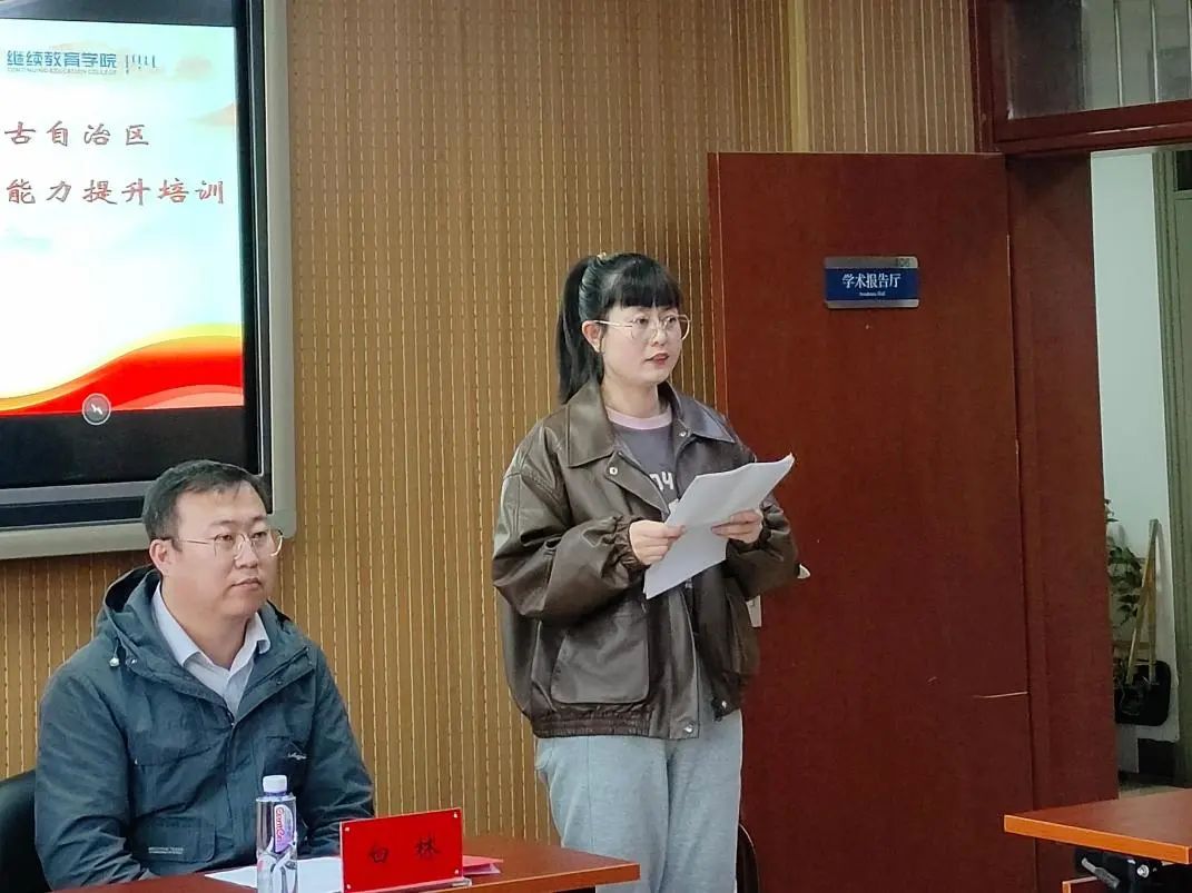 在结班仪式上,来自呼市第二十七中学教师代表闫霄老师回顾培训历程,围绕理论知识的深化与拓展、教学实践能力的提升、教育视野的拓宽及个人素养的提升三个方面进行阐述,畅谈未来规划,并对DB旗舰官方网站和首都师范大学表示了感谢。