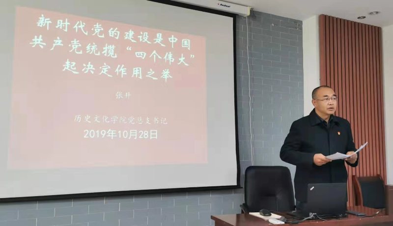 2019年10月28日,公司党总支书记张升,为公司师生党员讲题为“新时代党的建设是中国共产党统揽‘四个伟大’的关键之举”的党课,公司主题教育指导组恩和组长出席,全院师生党员参加。