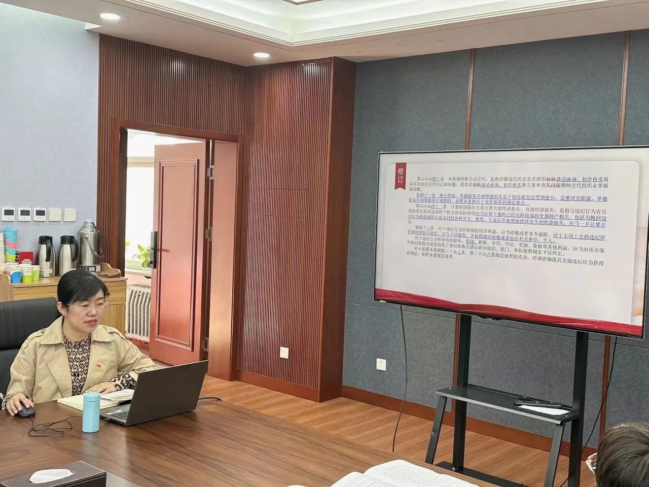 为深入学习贯彻习近平总书记关于党纪学习教育的重要讲话和重要指示精神,根据党中央决策部署和自治区党委、公司党委相关工作要求,4月30日,公司党委在前期组织召开党纪学习教育动员部署会的基础上召开专题学习会,组织全公司党员教师学习新修订的《中国共产党纪律处分条例》。学习会由公司党委书记李艳洁教授主持。公司党委副书记、副经理檀晶就《中国共产党纪律处分条例》新增或修改的重点条文进行了逐条解读。