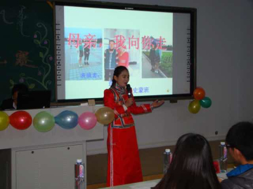 首先进行的是蒙语组比赛,选手们均盛装出席,穿着精美的蒙古族服装。其中,扎松宝力尔神态端庄,动作自然,她朗诵的《与母亲在一起》,配上优美动听的音乐,使她的讲演非常有感染力。