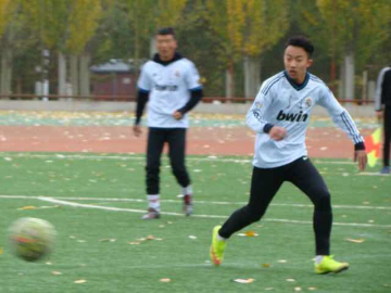赛时,冷风呼啸,雨点滴落。但这不能阻挡球员们比赛的热情,现场氛围十分热烈。球员们步伐矫健,配合默契,快速传球,奋力拼抢,突破了对方的一道又一道封锁线,在宽阔的球场上尽情挥发着对足球的热爱。其中,田震宇同学连进多球,成为本次比赛取得胜利的重要力量支持。