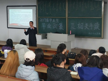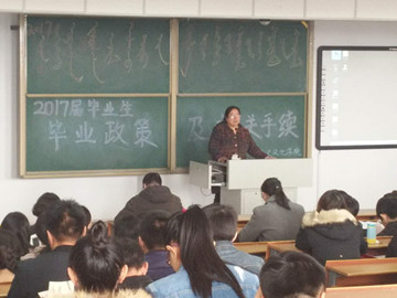 2017年3月16日上午10点,公司在行知楼323教室举办2017届毕业生毕业政策及相关手续指导讲座,公司就业指导中心刘在青老师主讲,公司党支部副书记王清霞、学工办负责人潘梅花、毕业班班主任哈达、李晓亮、哈斯格日勒、朝乐门等老师及全体大四员工参加本次讲座。