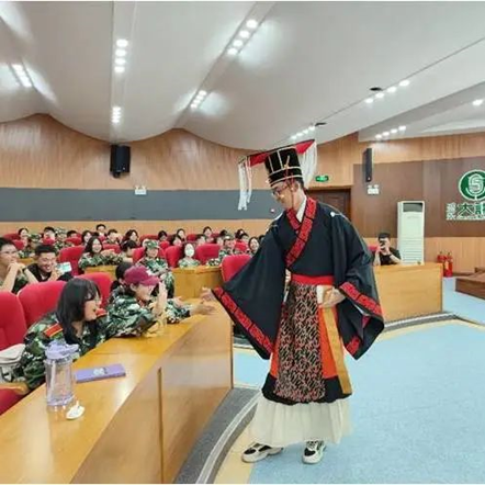 接下来,秦陵博物院的两位老师以趣味小品的方式讲解了秦朝饮食文化。紧接着,秦服饰体验环节的到来,吸引了同学们的目光。通过邀请四位同学穿上秦朝中、下、高级军吏俑与皇帝的服装,并带领同学们学习了秦朝的礼仪,让同学们近距离感受秦服饰文化。