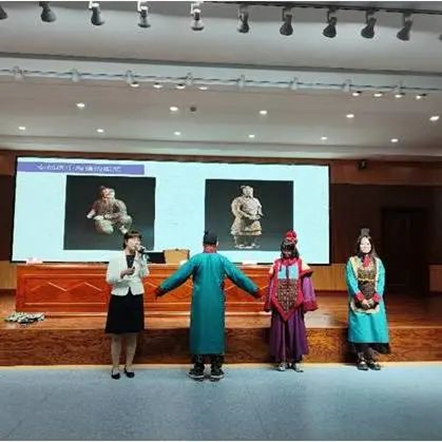 2023年9月7日,秦陵博物院同公司开展的“优秀历史文化进校园走进内蒙”暨铸牢中华民族共同体意识教育主题讲座在盛乐校区图书馆一楼报告厅进行。讲座由秦陵博物院冯莉老师与赵红芳老师主讲,公司郭永胜教授主持,2023级全体新生参加。