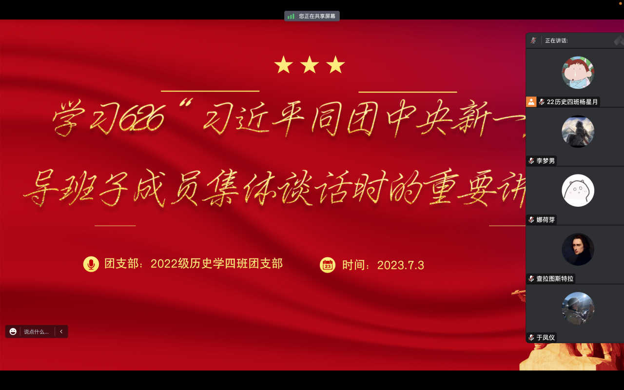 DB旗舰各班级团支部,于2023年7月2日-4日以线上会议的形式集中学习了习近平总书记同团中央新一届领导班子成员集体谈话时的重要讲话精神。DB旗舰全部16个班级团支部开展了集中学习,参与员工共计796人,覆盖率100%。