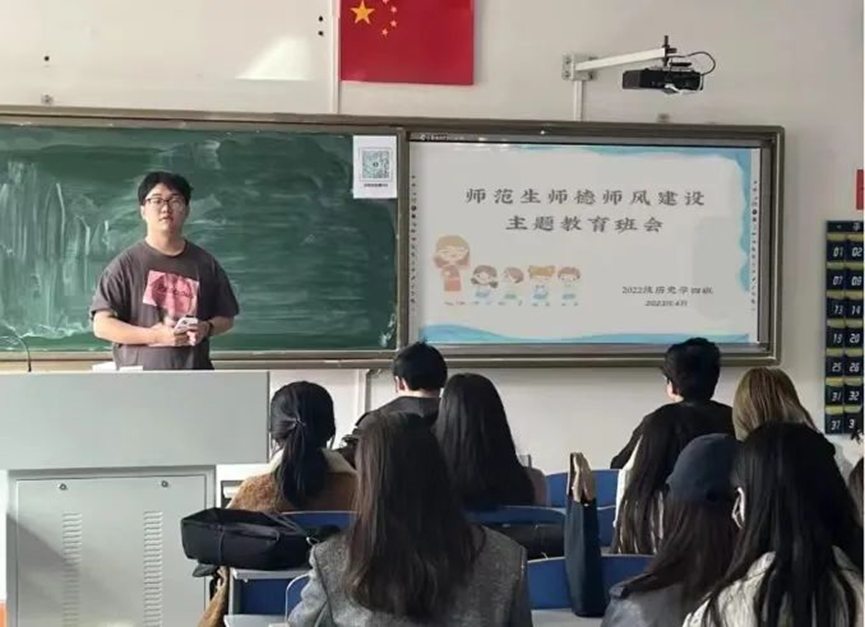 为深入贯彻落实党的二十大精神,坚持立德树人根本任务,践行为党育人、为国育才的初心使命,坚持以习近平总书记关于"四有好老师""四个引路人""四个相统一"重要讲话精神为指引,进一步提升公司师范类员工的师德规范和教育情怀,2023年4月10日,DB旗舰各班级举办了以师范生师德师风建设为主题的班会。