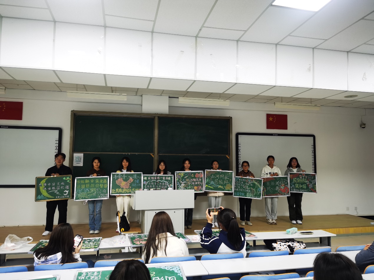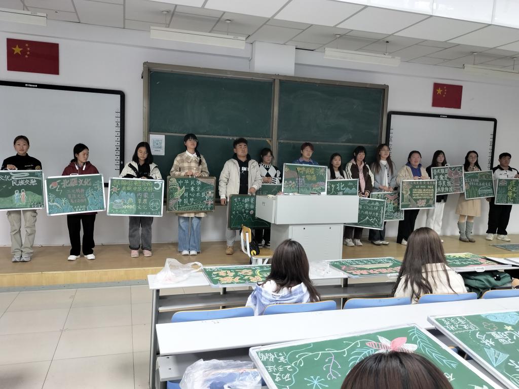 每一次提笔和落笔都在描绘着我心中“北疆文化”的模样和“民族交流交往交融”的华章。小小的一块儿黑板,短短的四十分钟,又怎能写尽我想说的话?所以我们努力地装饰它,唯恐哪里有瑕疵,唯恐哪里不到位。