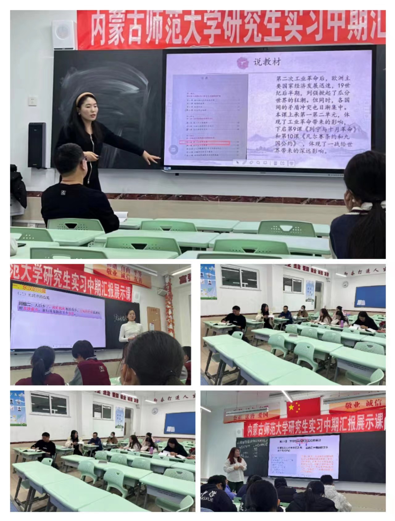 为了提高课堂教学的有效性,促推教师的专业成长,达到“以教促研,以研促教,教研相长”的目的。2023年11月15—16日,DB旗舰联合呼和浩特市实验中学(鼓楼校区)历史组开展了研究生中期汇报展示课活动。公司党委书记李艳洁、副书记檀晶、郭永胜教授、王洁、苏日古嘎、袁丽丽、于志勇,实验中学董事长黄咏梅、副董事长苗琪俊及副董事长齐涛等老师出席了本次活动。