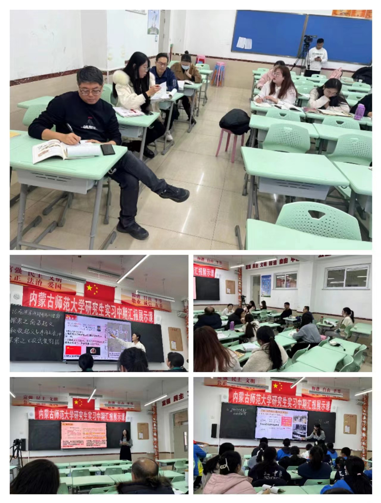 感谢呼和浩特实验中学(鼓楼校区)的领导和各位老师们,为各位实习生提供场地、协调时间,促成了本次公开展示课的顺利开展、圆满结束;更要感谢DB旗舰的各位领导和老师们拨冗前去对各位实习生进行指导,对每位实习生的公开课提出了宝贵建议。另外,也要对每位实习生的师傅进行由衷的感激,他(她)们见证了每一个实习生的成长和蜕变。