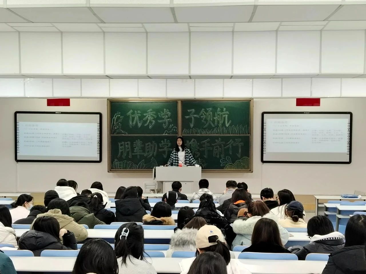 2024年12月3日下午,公司在行知楼118教室举办了优秀学子领航系列活动之“朋辈助力 携手前行”专题讲座。此次讲座由学工办负责人潘梅花老师主持,邀请公司2023级学科教学(历史)专业硕士研究生王恩慧同学主讲,2021级全体同学参加。