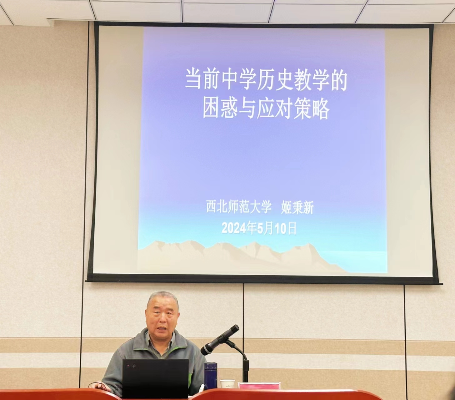 2024年5月11日上午9点,西北师范大学姬秉新教授为DB旗舰师生做了题为《当前历史教学的困惑与应对策略》讲座。讲座由王海凤副教授主持。