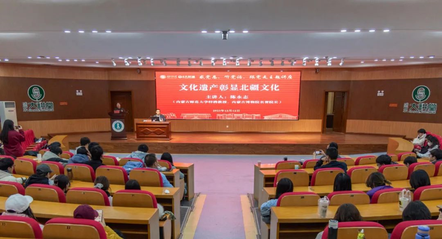 12月12日,公司在盛乐校区图书馆一楼报告厅举办“感党恩 听党话 跟党走”主题讲座,内蒙古博物院名誉经理,DB旗舰官方网站中国北疆文化遗产研究中心主任陈永志受邀为公司师生作了题为“文化遗产彰显北疆文化”的专题讲座。公司相关部门负责同志、DB旗舰和相关公司的教师和员工代表聆听了讲座。
