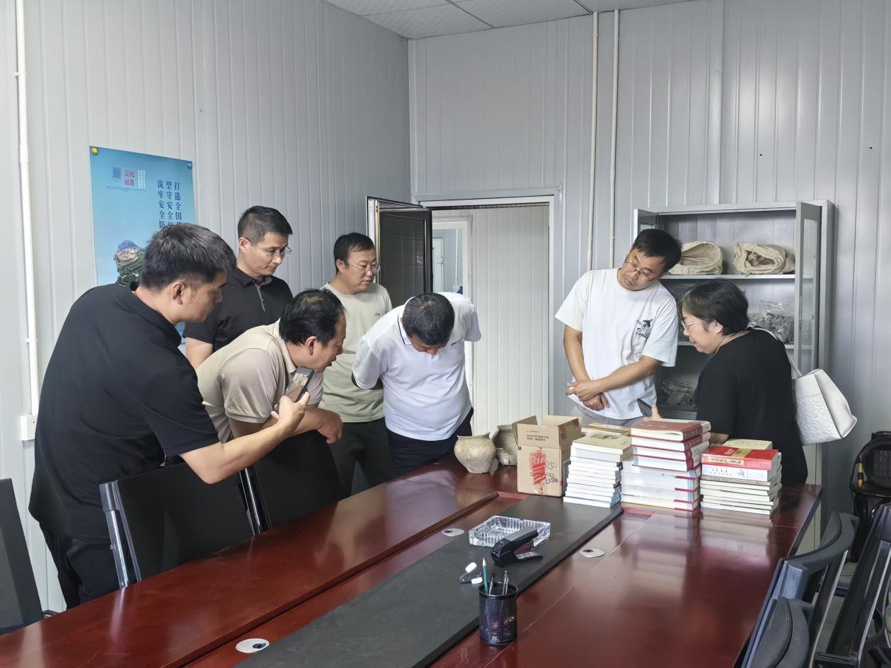 在良安窑遗址考古驻地,宋国栋副经理及各位老师观摩了出土文物标本,对取得的阶段性成果表示祝贺,表示将继续为师生提供必要的支持和帮助,并鼓励同学们克服困难,不断学习和创新。公司领导查看了员工们的生活情况,同学们分享了他们在田野实习中的收获,并感谢各位领导的关心与支持。在考古工地现场,宋国栋副经理对公司的实习工作提出指导与建议;李艳洁书记鼓励同学们继续在田野中锤炼考古技能,实践与理论相互促进,不断提升自身考古素养,高质量完成考古发掘任务。